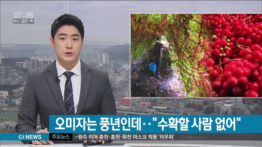 "올해는 코로나19 때문에 계절근로자 한 명도 안 들어왔기 때문에. 저희들이 지금 애로사항이 많습니다. 지금 오미자는 익어가는데, 수확을 못하고 있어요. 이걸 어떻게 해야 할지 걱정이 태산 같습니다."