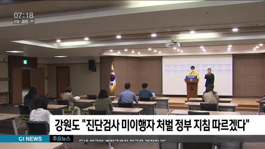 강원도 "진단검사 미이행자 처벌 정부 지침 따르겠다"