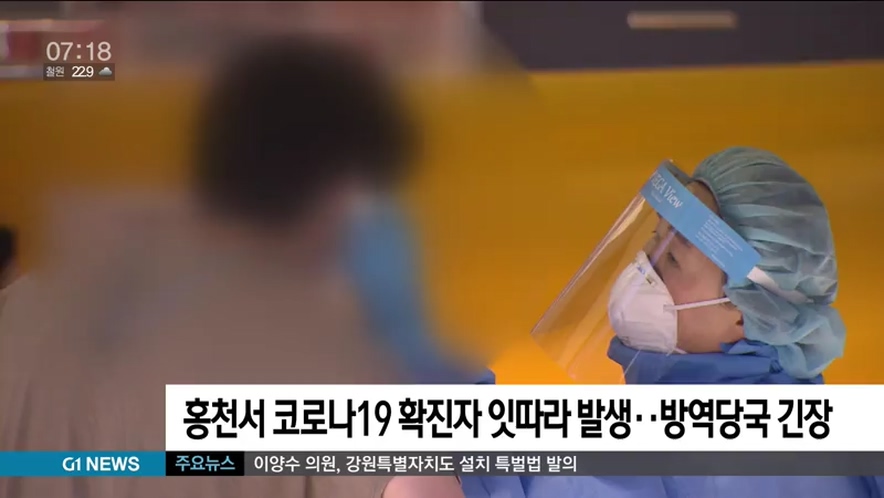 원주발 코로나19 집단 감염이 소강 상태를 보이고 있는 가운데, 홍천에서 연일 확진자가 발생하면서 방역당국이 긴장을 늦추지 못하고 있습니다.