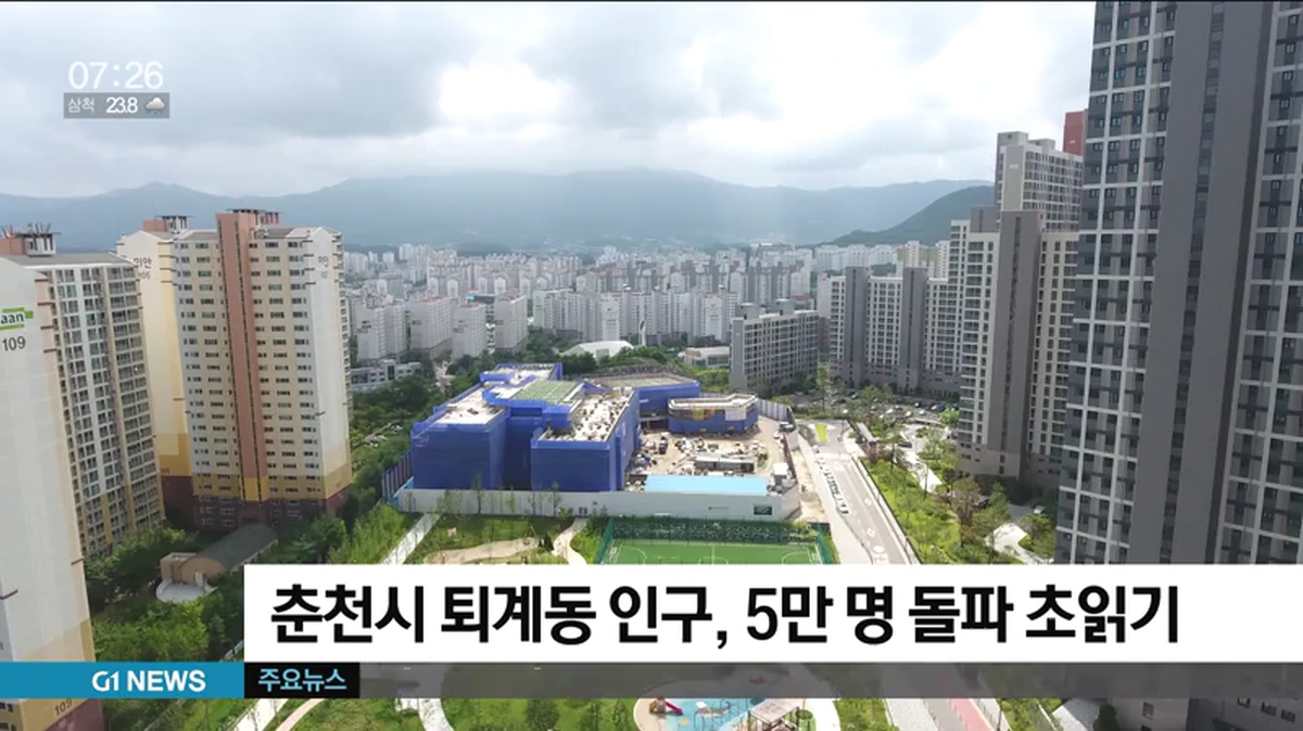 춘천시에 따르면 현재 퇴계동 인구는 4만 9천 960명으로 5만 명에 40명이 부족한 상황이며, 현재 추세라면 이달안에 5만 명을 넘어설 것으로 예상됩니다.
