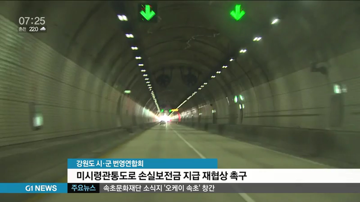 강원도와 미시령동서관통도로는 지난 2006년, 향후 30년간 차량 통행량이 연간 기준치의 79.8%를 밑돌면 도가 손실 보전을 해주는 MRG, 최소운영수입보장 협약을 체결했지만, 당시에는 서울-양양고속도로 개통 등을 고려하지 않아 적자가 커지고 있습니다.