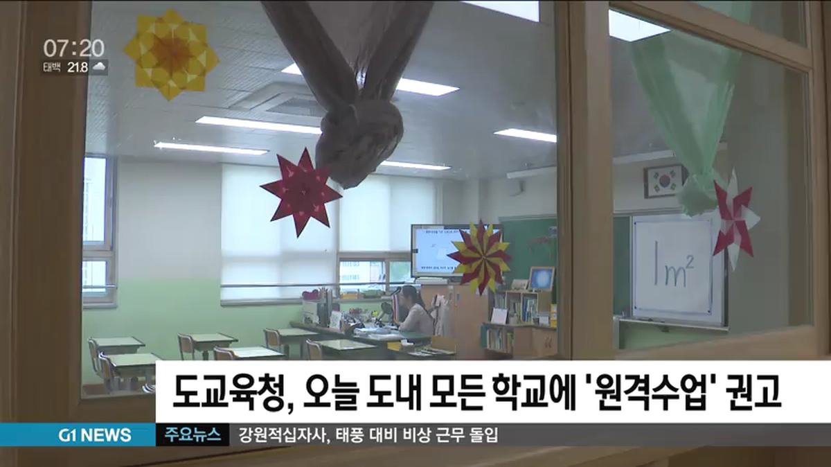 강원도교육청이 태풍위기경보가 '심각 단계'로 격상되자 오늘(3일) 하루 도내 모든 학교에 원격 수업 전환을 권고했습니다.