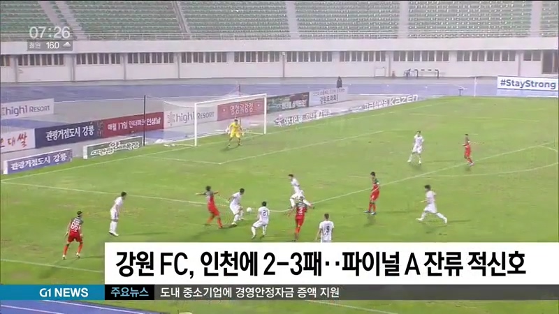 강원 FC는 어제(6일) 오후 강릉 종합운동장에서 열린 '하나원큐 K리그1 2020'19라운드 인천 유나이티드와의 홈경기에서 2대 3으로 패했습니다.