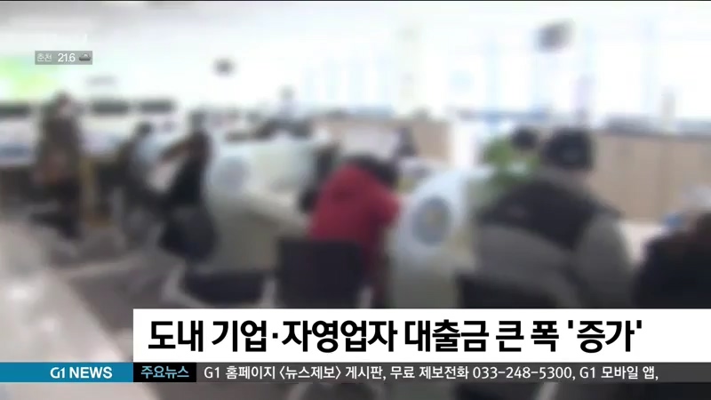 한국은행이 최근 발표한 자료에 따르면, 지난 6월 기준 도내 기업과 자영업자가 예금기관으로부터 대출받은 금액은 11조 6,919억원으로, 1분기보다 5,871억원 늘었습니다.