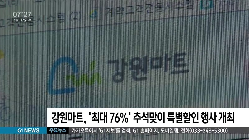 강원도 온라인 쇼핑몰 '강원마트'에서 추석을 맞이해 오는 30일까지 특별 할인행사를 개최합니다.
