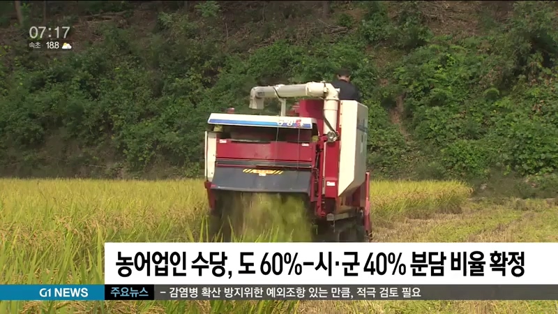 농어업인 수당, 도 60%-시·군 40% 분담 비율 확정