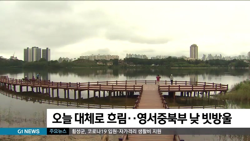 강원도는 오늘 대체로 흐린 가운데, 원주와 춘천 등 영서중북부 지역에는 낮 한때 빗방울이 떨어지겠습니다.