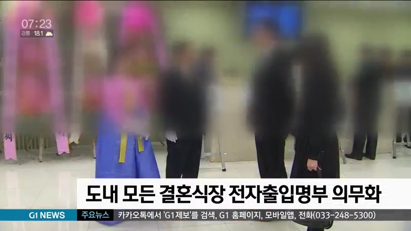 최근 '코로나19' 확산세가 계속되면서 도내 모든 결혼식장에서 전자출입명부 작성이 의무화됩니다.