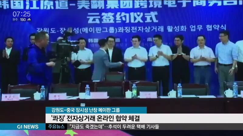 강원도는 중국 장시성 메이판 그룹과 온라인 화상시스템을 활용한 '콰징' 전자상거래 온라인 협약을 체결하고, 중국 최대 동영상 플랫폼을 활용한 프로모션을 추진합니다.
