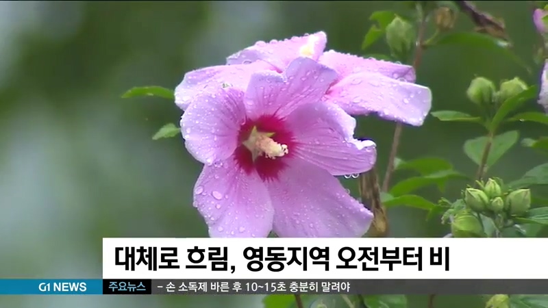 오늘 강원도는 대체로 흐린 가운데 영동지역에는 오전부터 비가 내리겠습니다.
