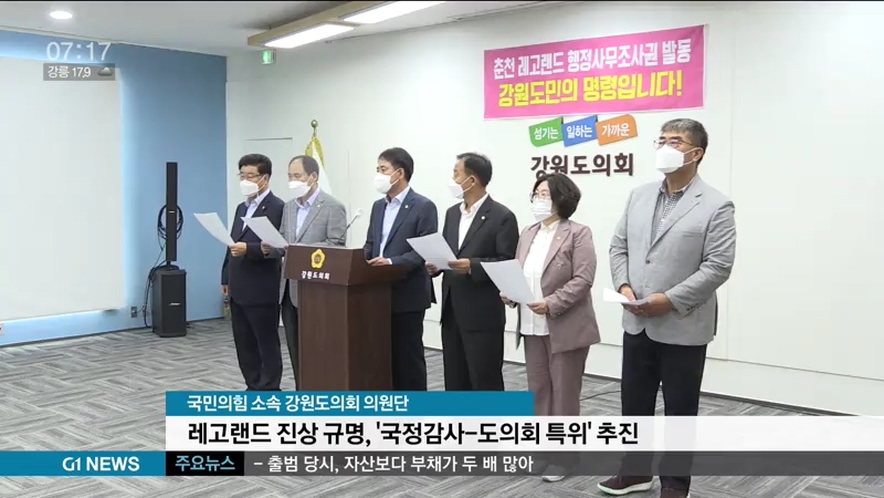 국민의힘 소속 강원도의회 의원들은 기자회견을 열고 "레고랜드 진상 규명을 위해 행정사무조사권 발동을 추진했지만, 민주당 의원들은 의지가 없는 것으로 보인다"고 지적했습니다.