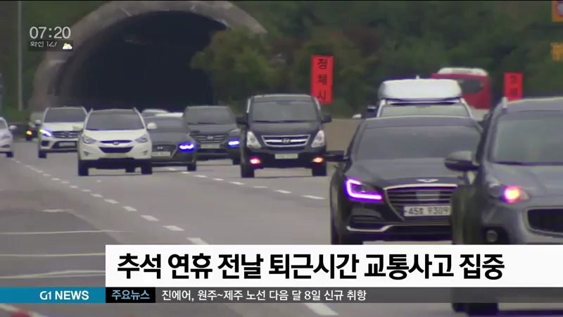 도로교통공단은 "특히 연휴 전날 퇴근시간대의 사고건수가 14%로 가장 높다"며 귀성길 안전에 유의해달라고 당부했습니다.