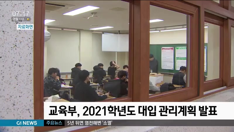 교육부는 '2021학년도 대입관리계획' 발표에서, 방역 등 관리 인력을 1년전 보다 3만여 명 늘리고,