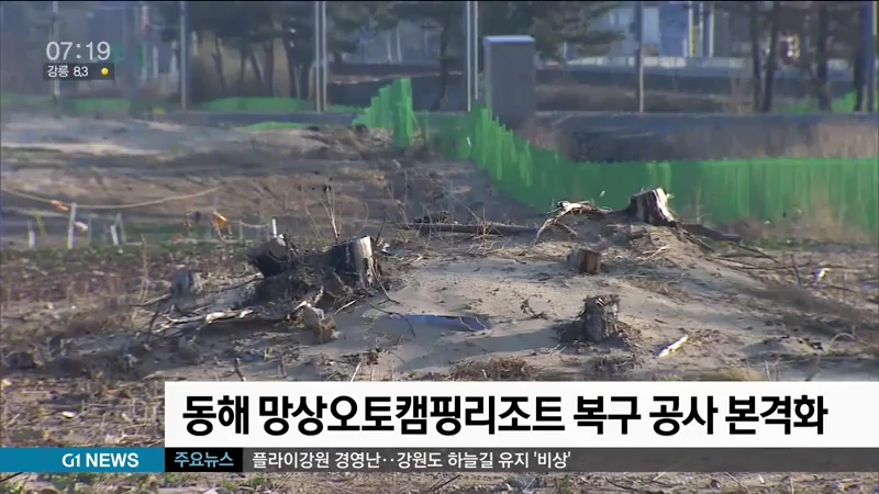 지난해 산불로 객실 등 건축물의 80% 이상이 소실된 동해 망상오토캠핑리조트 복구가 본격화됩니다.