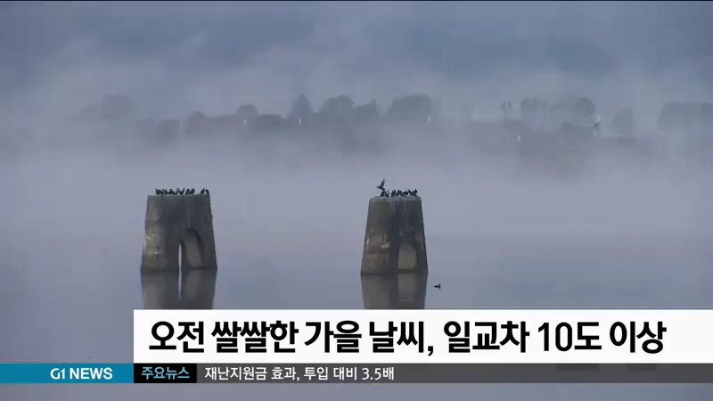 현재 도내 대부분 지역의 아침 기온이 10도 이하로 떨어진 가운데, 오전에는 쌀쌀한 가을 날씨가 이어지겠습니다.