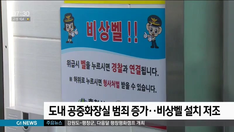 도내 공중화장실에서 발생하는 범죄가 매년 증가하고 있지만, 범죄 예방을 위한 비상벨 설치율은 극히 저조한 것으로 나타났습니다.
