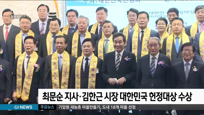 시상식에서 최문순 도지사와 김한근 강릉시장이 각각 자치행정 부문 대상을 수상했습니다.