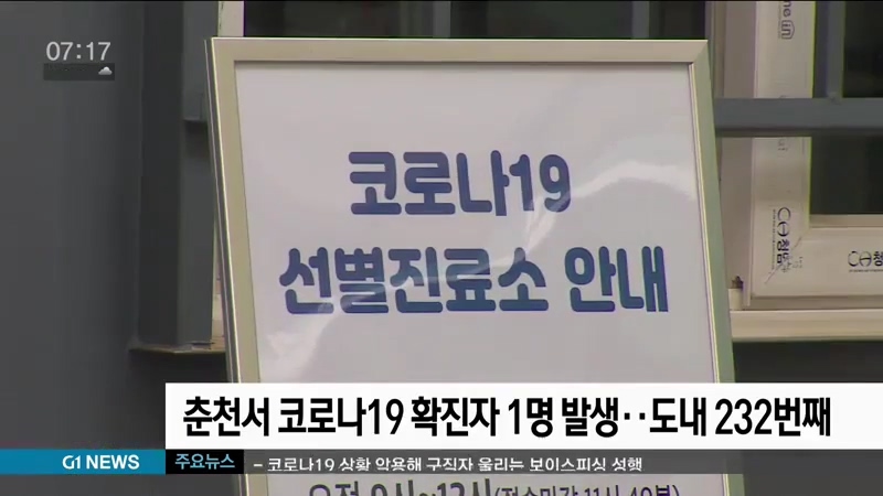 춘천서 코로나19 확진자 1명 발생..도내 232번째