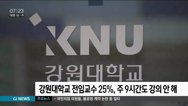 최근 3년동안 강원대 전임교수들의 강의시간을 분석한 결과, 매년 이들의 25%가 법정 의무강의시간인 주 9시간을 채우지 않은 것으로 조사됐습니다.