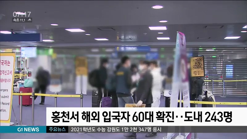 홍천서 해외 입국자 60대 확진..도내 243명