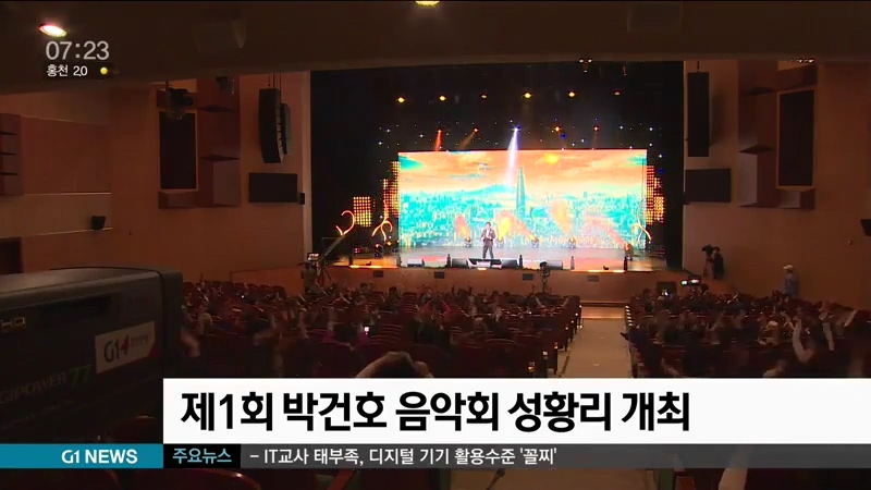 G1강원민방과 한국수력원자력이 주최한 이번 음악회는 이용, 정수라 등 유명 가수들이 박건호 선생이 작사한 노래를 부르며 고인의 음악적 업적을 기렸습니다.