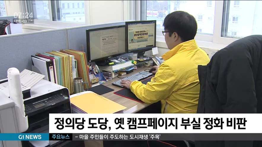 정의당 도당, 옛 캠프페이지 부실 정화 비판