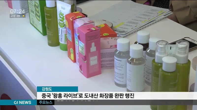 강원도는 지난달 22일부터 일주일간 중국 현지에서 도내 화장품 기업 17곳의 제품을 '왕홍 라이브'로 판매해, 준비한 화장품 20억 원 어치를 완판했다고 밝혔습니다.
