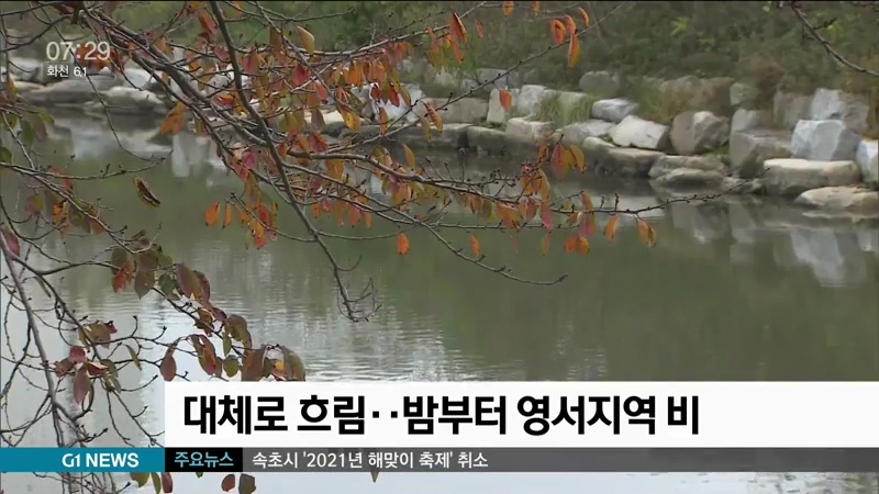 오늘 강원도는 대체로 흐린 가운데, 늦은 밤부터 영서지역 곳곳에 비가 조금 내리겠습니다.