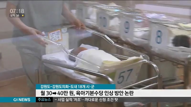 강원도의회도 수당 10만 원 인상으로 출산율을 저하를 막을 수 있을 것이냐는 의구심을 강하게 표출하고 있어, 육아기본수당 인상에 대한 논란은 계속될 것으로 보입니다.