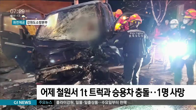 어제 철원서 1t 트럭과 승용차 충돌..1명 사망