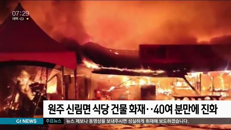 원주 신림면 식당 건물 화재..40여 분만에 진화