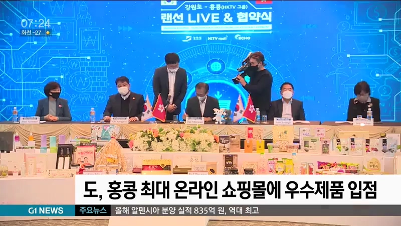 강원도는 중국 콰징 시장 진출에 이은 홍콩 진출을 위해, 홍콩 최대 온라인 쇼핑몰인 'HKTV'몰에 도내 중소기업 우수제품을 입점하기로 했습니다.