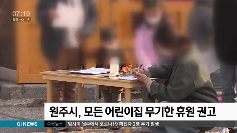 원주시는 최근 코로나19 확산에 따라 사회적 거리두기를 1.5단계로 격상했다면서 지역 내 모든 어린이집에 휴원 권고를 내렸습니다.