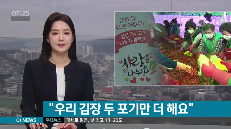 이달 30일까지 진행되는 이번 캠페인을 통해 춘천지역 저소득 가구 만 곳에 정성스럽게 담근 김장이 배달될 예정입니다.