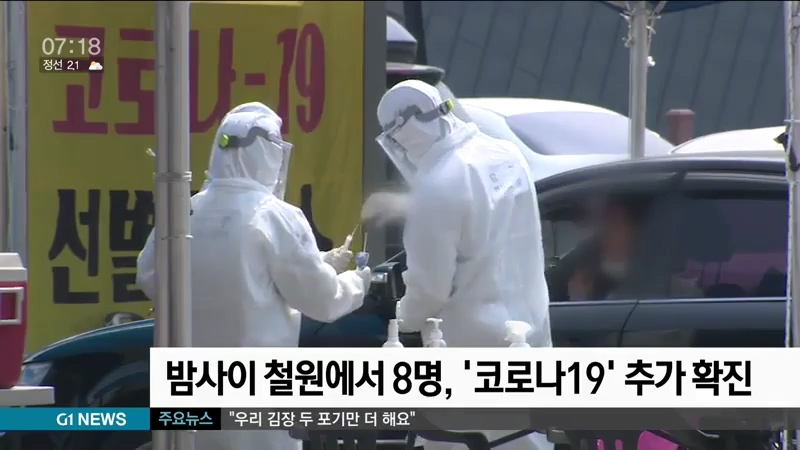 '코로나19' 산발적 재확산세가 커지고 있는 가운데, 밤사이 철원에서 8명의 주민이 추가 확진 판정을 받았습니다.