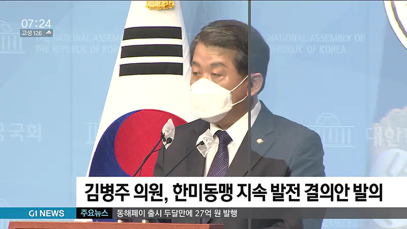 강릉 출신 더불어민주당 김병주 의원은 어제, 국회에서 기자회견을 갖고, '한반도 평화를 위한 한미동맹 지속 발전 촉구 결의안'을 대표발의했다고 밝혔습니다.