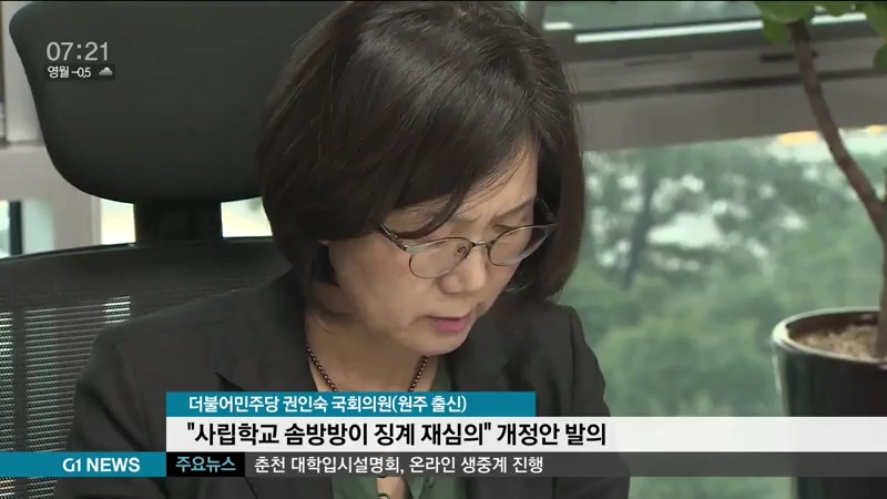 원주 출신 더불어민주당 권인숙 의원이 사립학교 법인이 비위 교직원에 대해 징계를 가볍게 했을 경우, 시.도 교육청 징계 재심의기구에서 심의하도록 하는 사립학교법 일부 개정 법률안을 대표 발의했습니다.