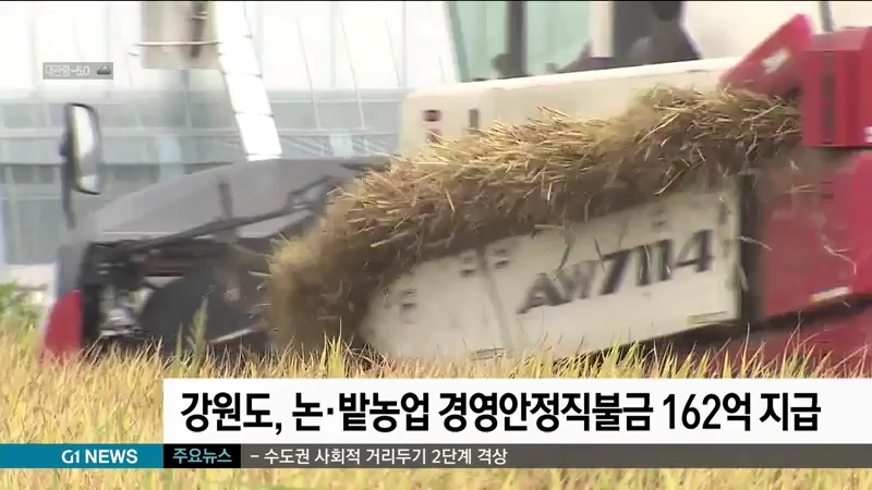 강원도, 논·밭농업 경영안정직불금 162억 지급