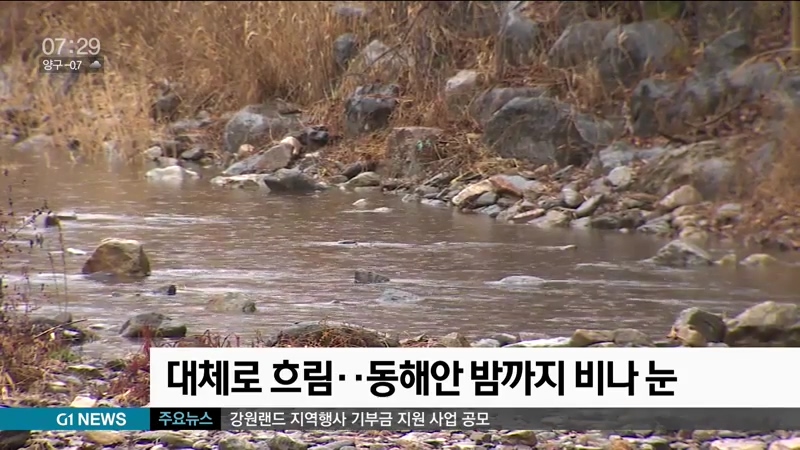 오늘 강원도는 대체로 흐린 가운데, 영동지역을 중심으로 밤까지 비나 눈이 내리는 곳이 있겠습니다.