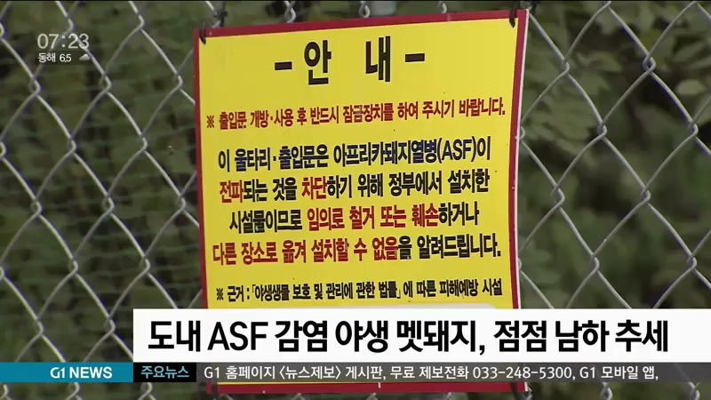 도내 ASF 감염 야생 멧돼지, 점점 남하 추세
