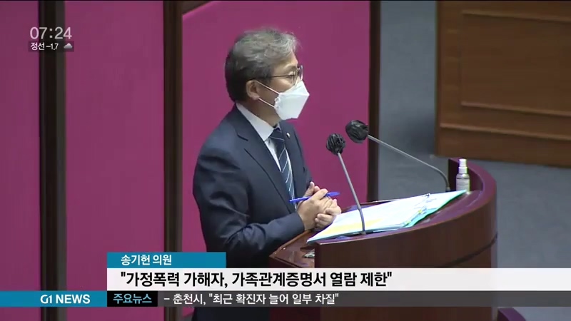 송기헌의원 "가정폭력 가해자, 가족관계증명서 제한