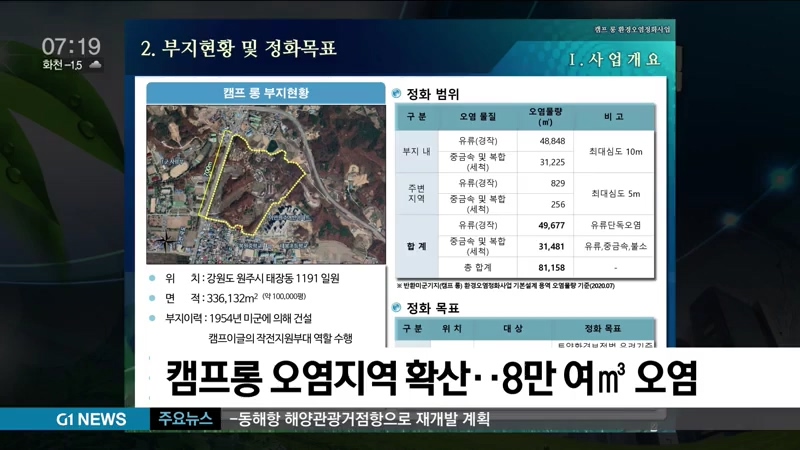 원주시가 어제 캠프롱 환경오염정화사업 온라인 주민설명회를 통해 공개한 자료에 따르면,