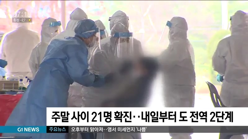 주말 사이 21명 확진..내일부터 도 전역 2단계