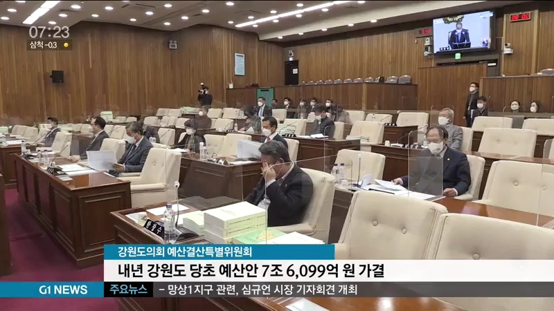 강원도가 제출한 7조 6,099억 원 규모의 내년도 당초 예산안을 심사한 도의회 예결특위 계수조정 소위는 사상 처음으로 지난 3일부터 어제(7일)까지 회기 일정을 변경하며 심사를 마쳤습니다.