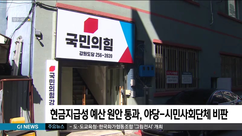 국민의힘 강원도당은 논평을 통해 민생복지 예산을 줄여 현금성 복지 예산만 늘린 내년 강원도 예산이 도의회를 통과한 것은, 도민을 기만한 정치 활동이라고 비난했습니다.