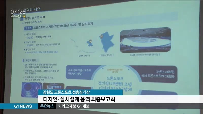 강원도는 어제 드론스포츠 전용 경기장 디자인·실시설계 용역 최종보고회를 열고, 경기장 조성에 따른 분야별 실행방안 등을 논의했습니다.