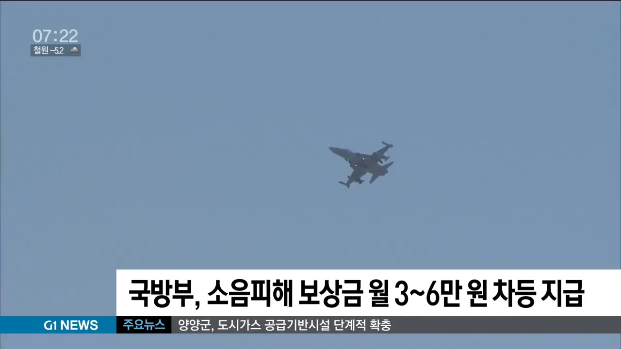 국방부는 군소음보상법 시행에 따라, 소음피해지역을 1종에서 3종으로 구분하고 보상금을 차등 지원할 방침이라고 밝혔습니다.