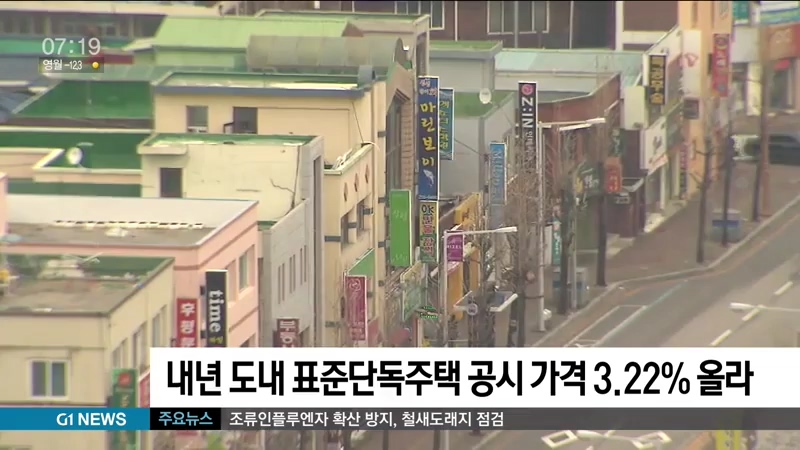 내년 도내 표준단독주택 공시 가격 3.22% 올라