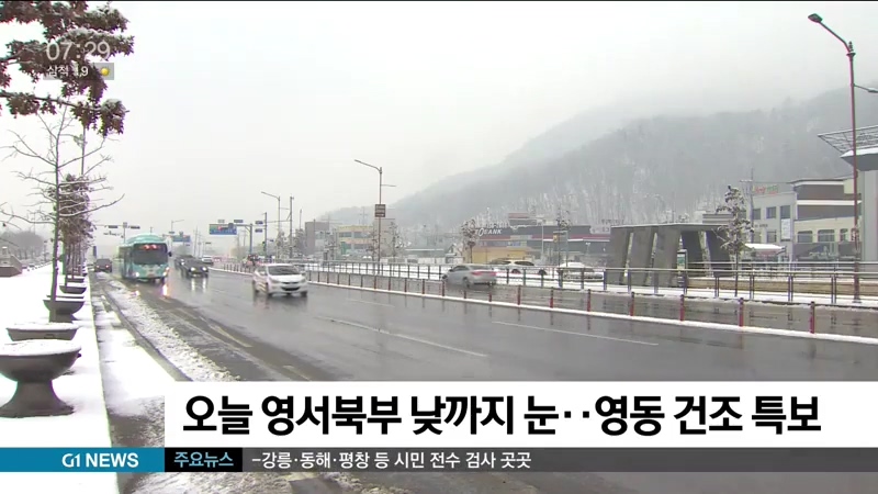 오늘 영서북부 낮까지 눈..영동 건조 특보