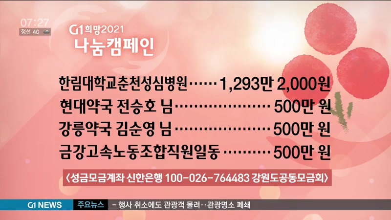Copyright ⓒ G1방송. All rights reserved. 무단 전재 및 재배포 금지.